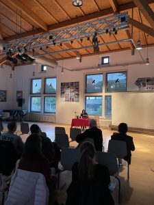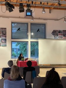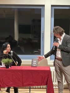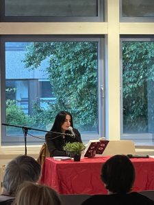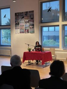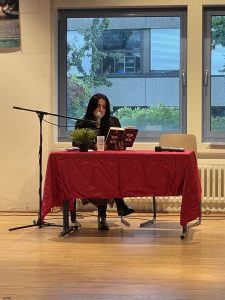 Am 21. September 2022 hatten wir die Ehre die Schriftstellerin zu empfangen. Sie las aus ihrem Roman „Im Bauch der Königin“ erschien 2022 bei DuMont. Der Roman ist als Wendebuch konzipiert und handelt in männlicher als auch weiblicher Perspektive über das Leben in einer kurdisch-deutschen Community in einer Hochhaussiedlung. Für sowohl persönliche, als auch werkimmanente Fragen war Karosh bereit und konnte somit der Zuhörerschaft einen vertieften Einblick in ihr Werk gewähren. Getränke wurden von SchülerInnen der Q1 zur Verfügung gestellt. Bei Karosh selbst haben wir uns mit einem Sammelband Else Lasker-Schülers bedankt. Zu bedanken haben wir uns bei dem Sonderprogramm „Aufgeschlagen!“, welches die Veranstaltung finanziert hat.